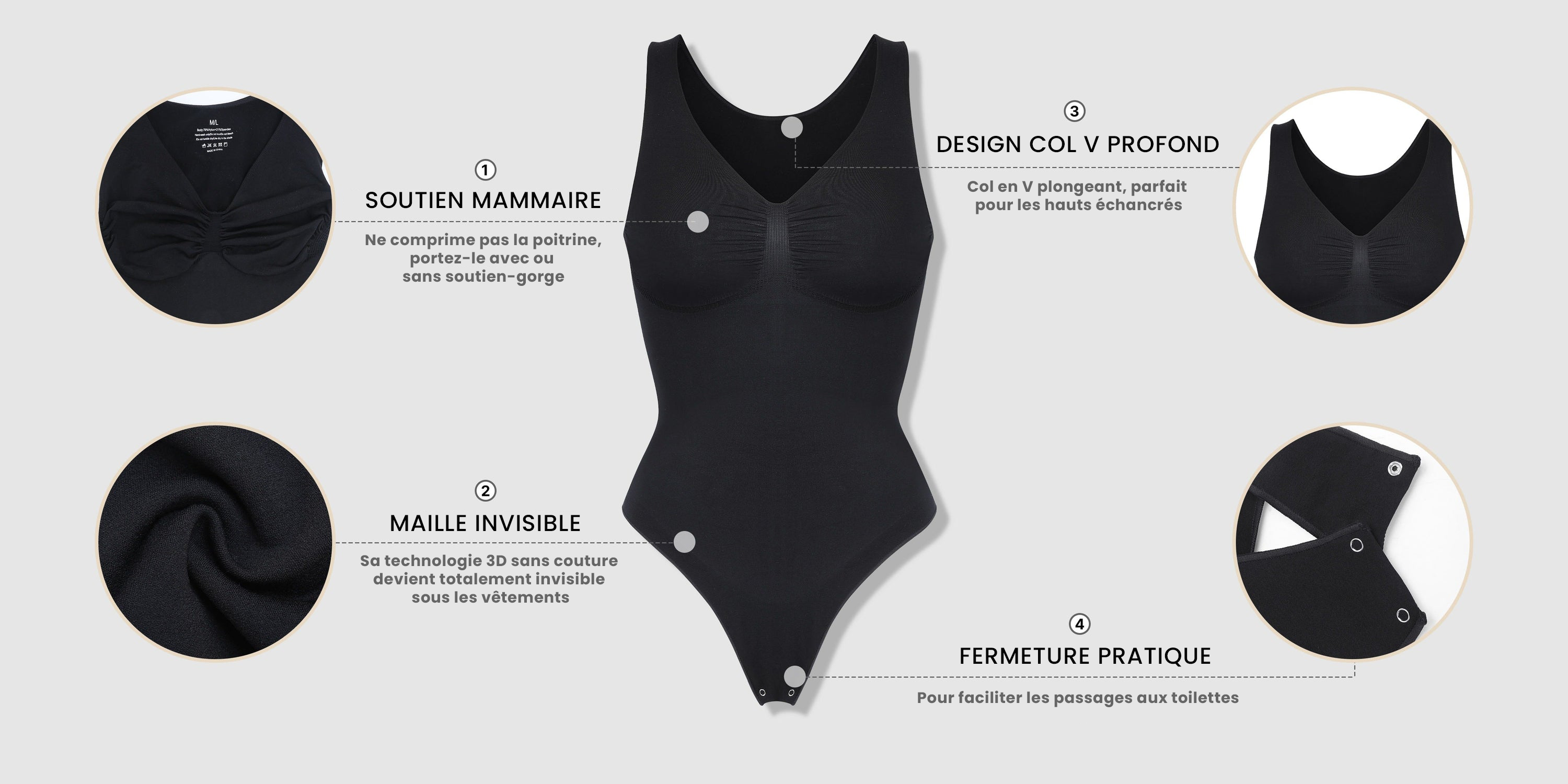 Enfilez et Affinez, avec un body qui transforme vos courbes et sublime vos traits pour une confiance retrouvée.